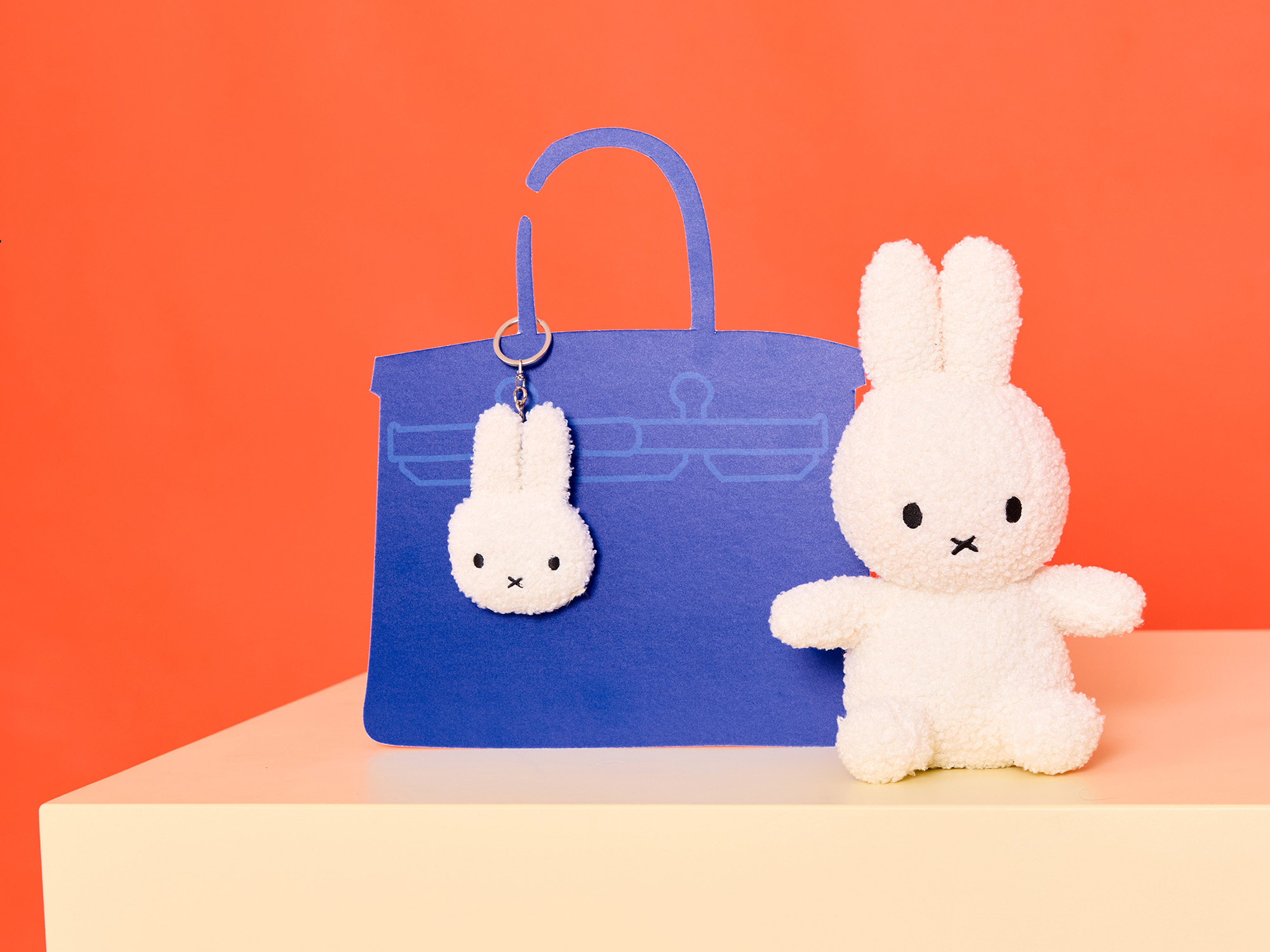 フラットなキーチェーンは落ち着いたカラーのバリエーション。やわらかで可愛らしいフォルムのミッフィーです。